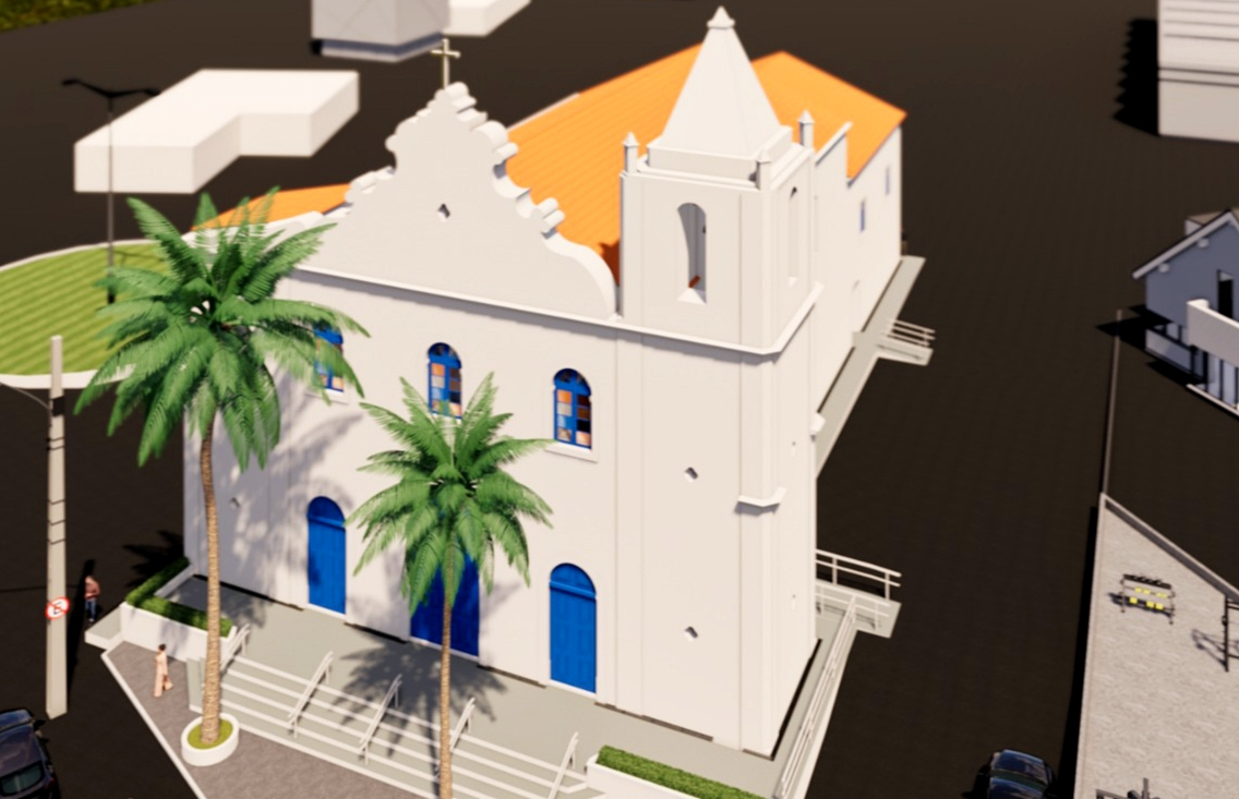 A Igreja Matriz Nossa Senhora do Amparo, inaugurada em 1855, foi erguida sobre um pequeno altiplano, o que faz com que a edificação domine a paisagem urbana. Em frente à igreja, destaca-se uma aleia de palmeiras reais, que reforça sua perspectiva, formando a Rua das Palmeiras, que divide ao meio a Praça Domingos José Martins, principal espaço público da sede municipal. A atual construção foi a terceira edificação a abrigar uma igreja na sede do município. As anteriores acabaram se arruinando com o desuso, após a inauguração da nova matriz.